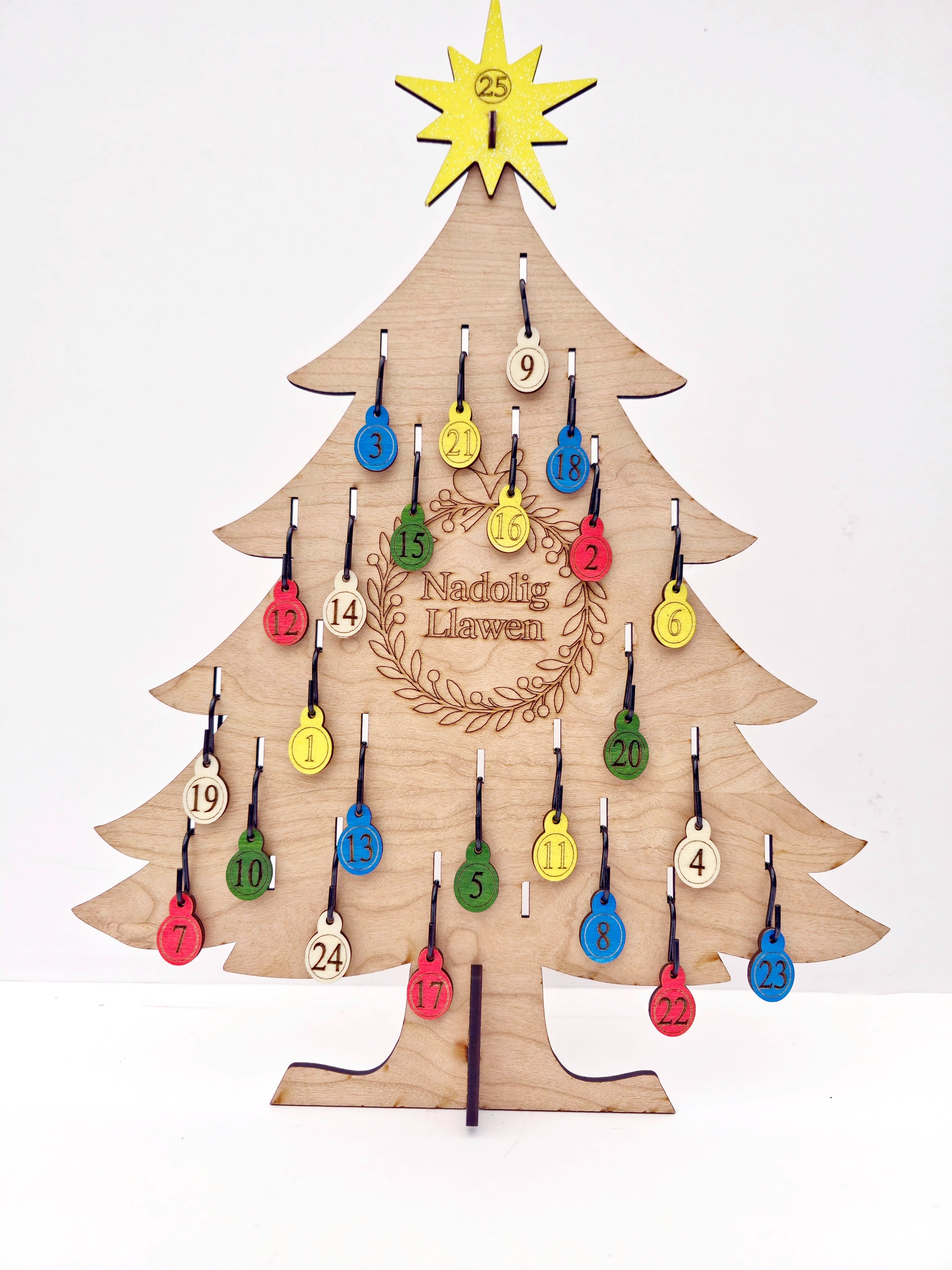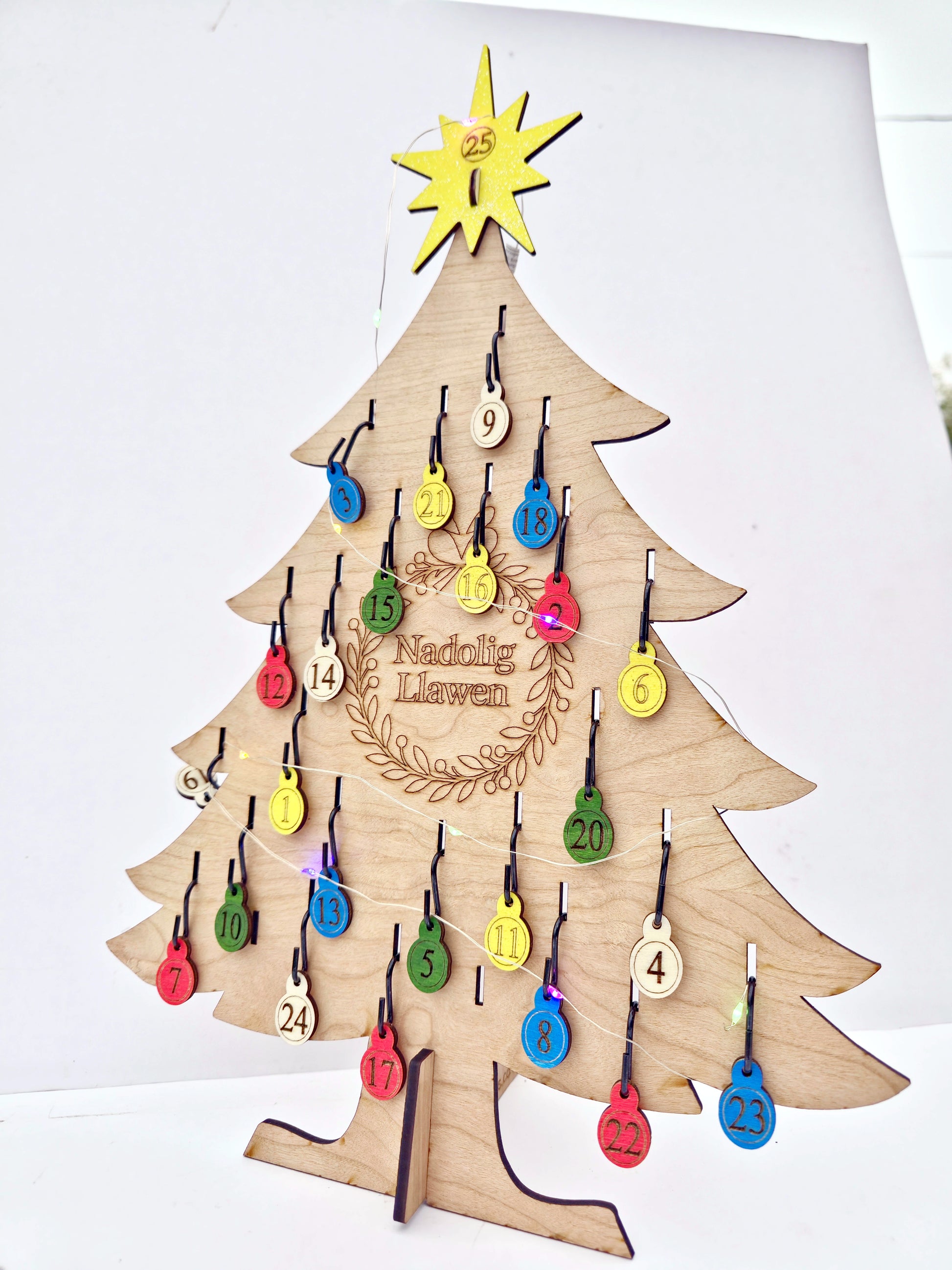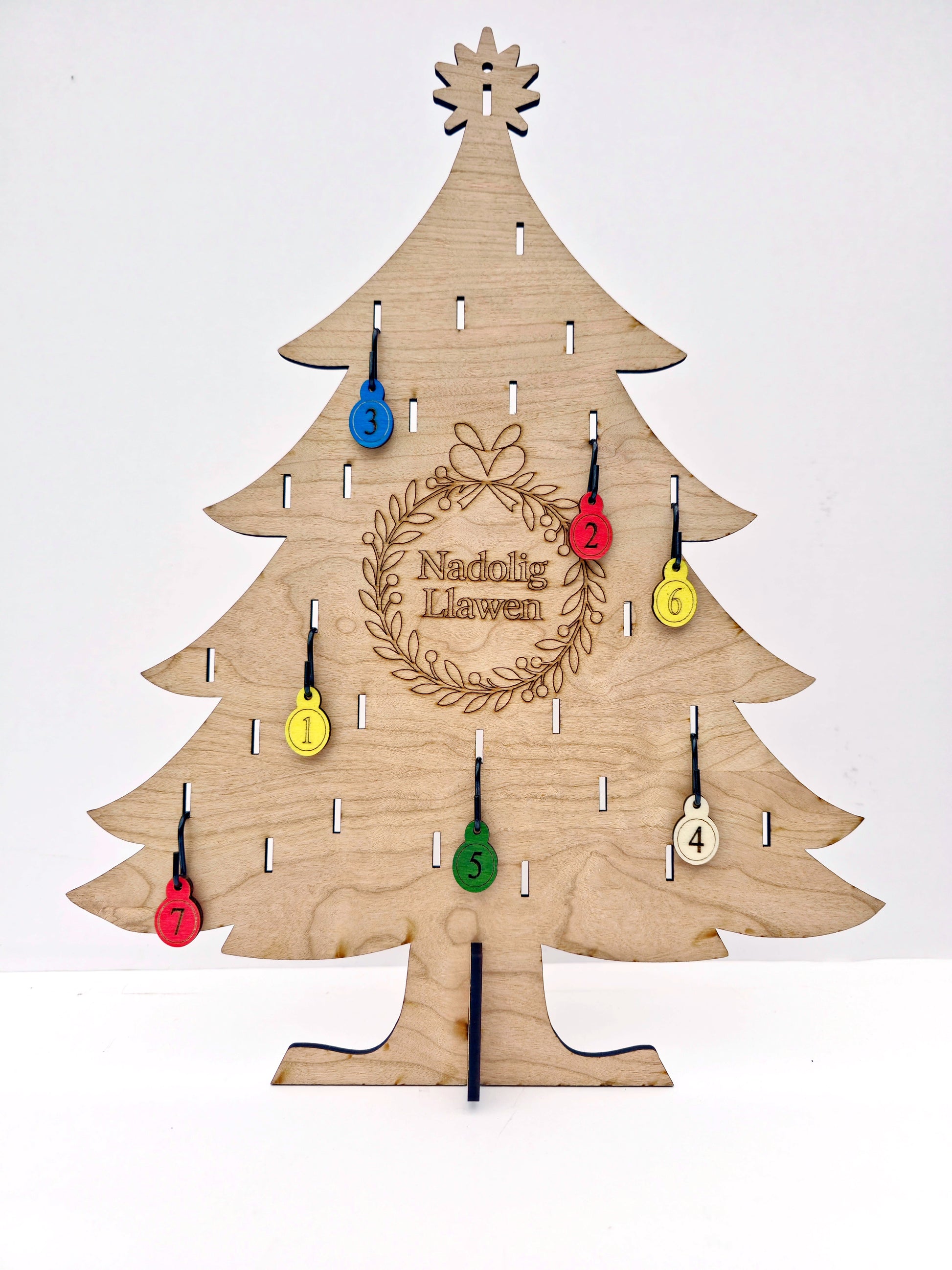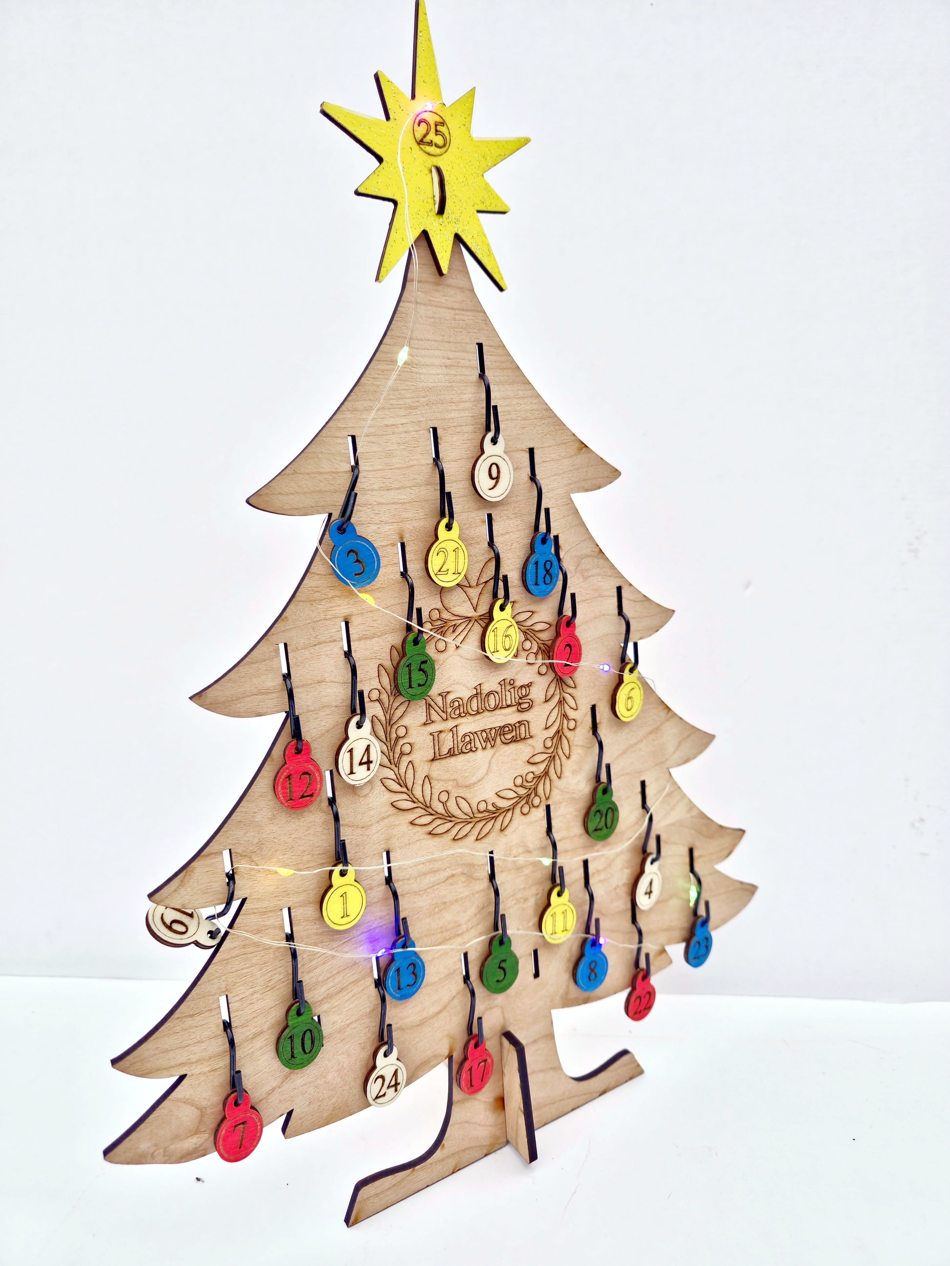 Reusable Advent Christmas Tree Set – Cherrywood MDF with Baubles, Lights & Keepsake Box